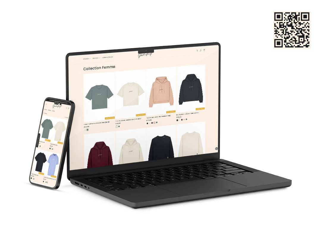 La palette beige et noir, sobre et contrastée, renforce la reconnaissance de la marque et son positionnement streetwear haut de gamme.